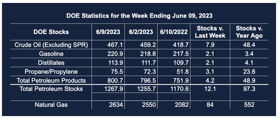 Supply/demand data in the United States for the week ended June 9, 2023, were released by the Energy Information Administration.
