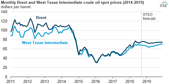 Going forward, the Brent-WTI price spread is expected to remain the primary factor affecting East Coast domestic crude oil receipts. In the September Short-Term Energy Outlook, EIA forecasts Brent will average about $6/b more than WTI in 2018 and in 2019.