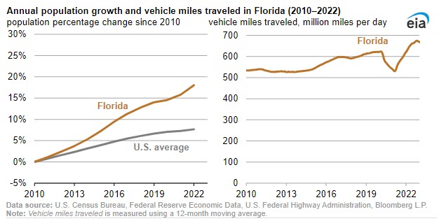 Factors other than resident population influence driving in Florida and are likely also affecting state-level vehicle miles traveled and motor gasoline consumption trends. These factors include: