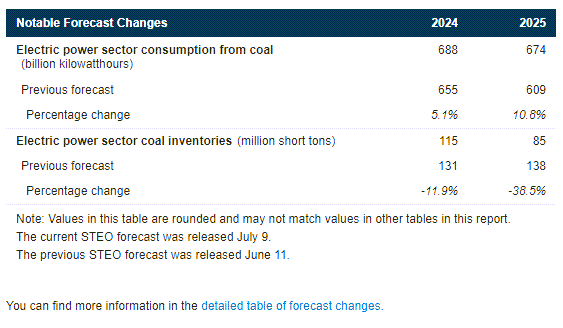 - Electricity generation. After reviewing the responsiveness of fossil fuel generation to natural gas prices, we now expect more power generation from coal and less from natural gas than we did in our previous forecast, especially during the winter. In the June Short-Term Energy Outlook, we had forecast 18 BkWh less coal generation in 2H24 than in 2H23, we now forecast 10 BkWh more. We had also forecast that 2H24 natural gas generation would be relatively similar to 2H23. We now forecast 21 BkWh less.