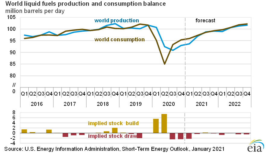 - The January STEO remains subject to heightened levels of uncertainty because responses to COVID-19 continue to evolve. Reduced economic activity and changes to consumer behavior in response to the COVID-19 pandemic caused energy demand and supply to decline in 2020. The ongoing pandemic and the success of vaccination programs will continue to affect energy use in the future.