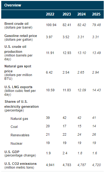 - Crude oil prices. The Brent crude oil spot price increased in January, averaging $80 per barrel (b) because of heightened uncertainty about global oil shipments as attacks to vessels in the Red Sea intensified. Although we expect crude oil prices will rise into the mid-$80/b range in the coming months, we expect downward price pressures will emerge in 2Q24 as global oil inventories generally increase through the rest of our forecast. However, ongoing risks of supply disruptions in the Middle East create the potential for crude oil prices to be higher than our forecast.