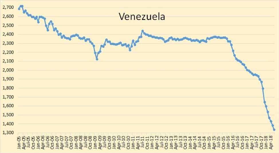 - Venezuelan production below 1.5 million barrels daily