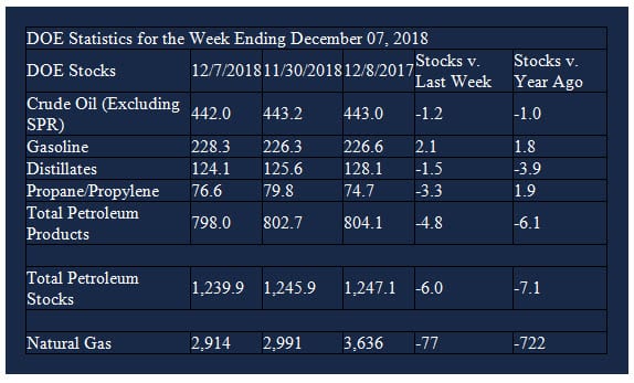 Supply/demand data in the United States for the week ending December 7, 2018 were released by the Energy Information Administration.