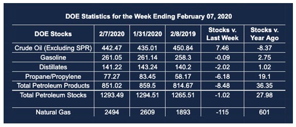 Supply/demand data in the United States for the week ending Feb. 7, 2020, were released by the Energy Information Administration.