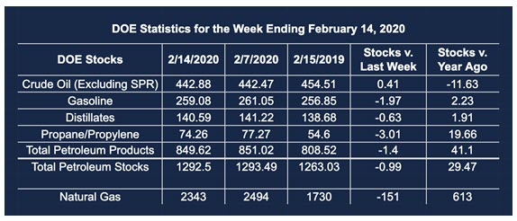 Supply/demand data in the United States for the week ending Feb. 14, 2020, were released by the Energy Information Administration.