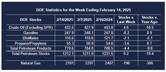Supply/demand data in the United States for the week ended February 14, 2025, were released by the Energy Information Administration.