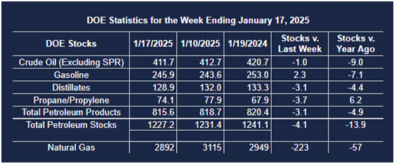 Supply/demand data in the United States for the week ended January 24, 2025, were released by the Energy Information Administration.