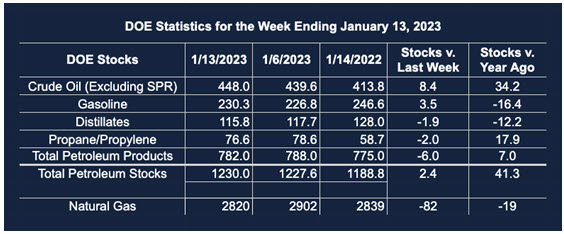 Supply/demand data in the United States for the week ended January 13, 2023, were released by the Energy Information Administration.