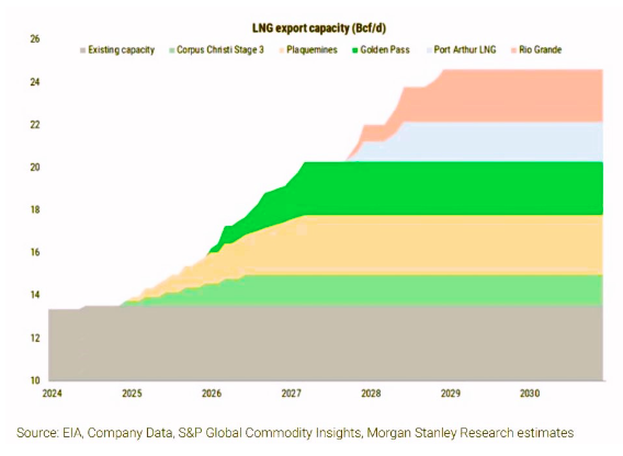 It is not hyperbolic to say that in the next five years, U.S. LNG exports will undergo a massive sea change. By 2030, U.S. LNG exports are forecast to increase by 85%. LNG carriers are already queuing up at a new export facility in Louisiana and will soon begin doing so at an expanded facility in Corpus Christi. In total, LNG exports are expected to increase by 11 bcf/day.