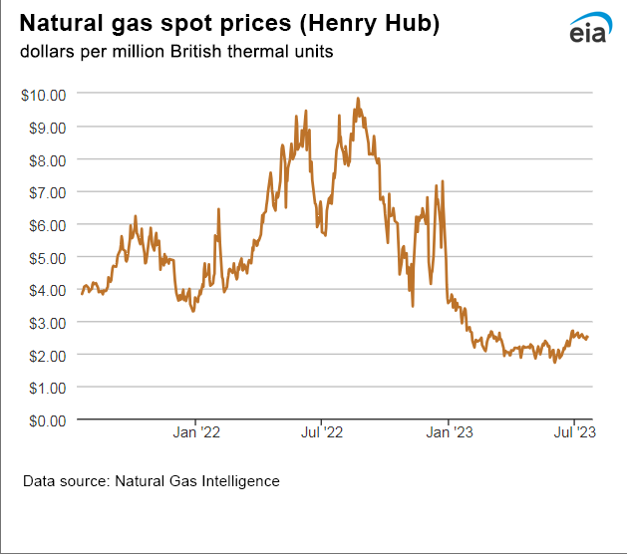 Record temperatures have been widely reported this year. This showed up in gas-fired electric power generation for the first half of the year. Output increased nearly 10% over the same period last year.