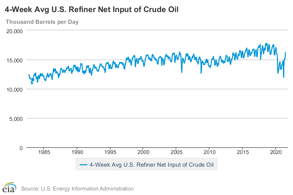 4-Week Avg. U.S. Refiner Net Input of Crude Oil Source: EIA
