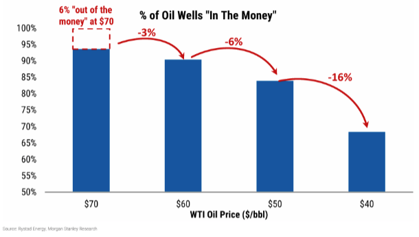 As the WTI price drops, U.S. shale oil wells become ‘out-of-the money’ – the value of the oil the produce falls below their breakeven costs.