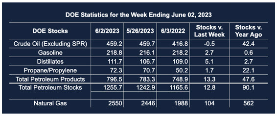 Supply/demand data in the United States for the week ended June 2, 2023, were released by the Energy Information Administration.