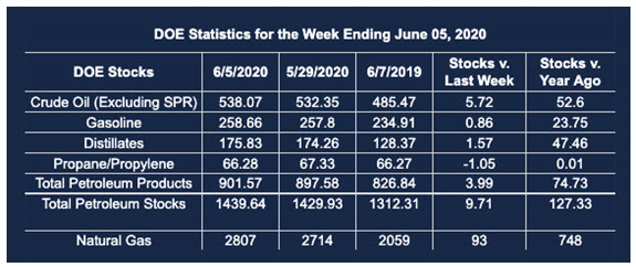 Supply/demand data in the United States for the week ending June 5, 2020, were released by the Energy Information Administration.