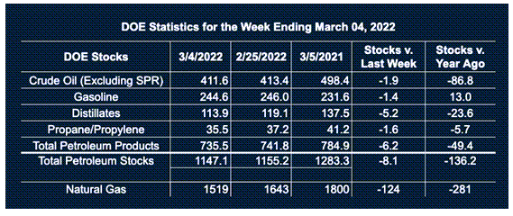 Supply/demand data in the United States for the week ending March 4, 2022, were released by the Energy Information Administration.