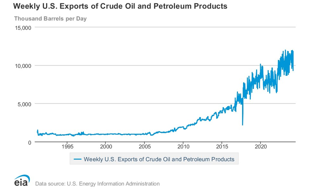 The increase in exports reflects the country’s heightened ability to expand production through shale oil technology and a global market receptive to American oil because of limitations imposed on Russian supplies to Western Europe and OPEC+ self-imposed quotas on crude oil exports (however ineffective these may be).