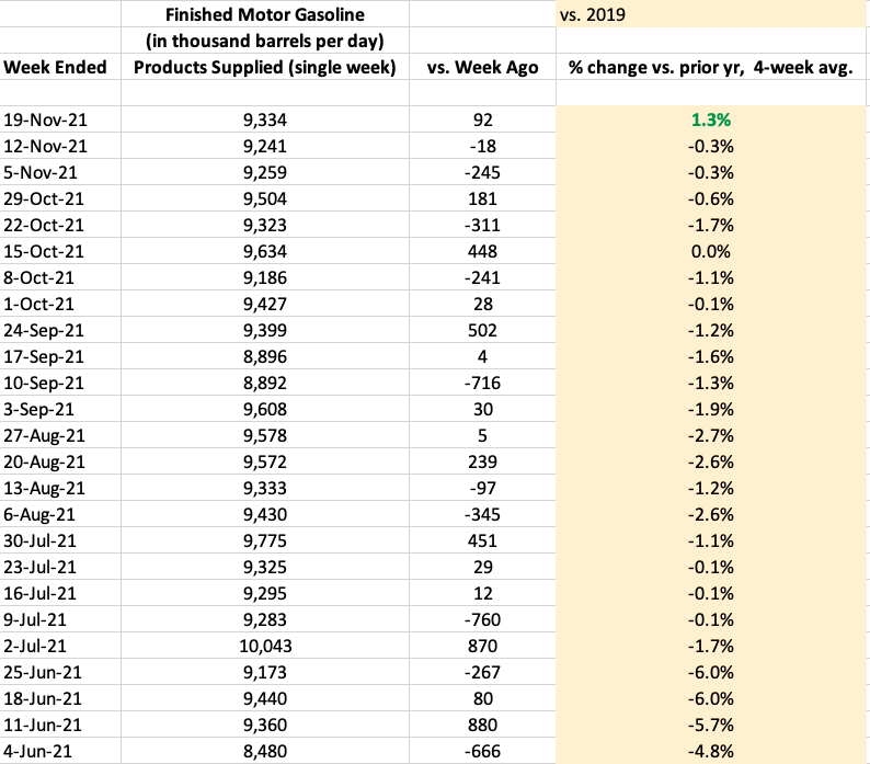 Supply/demand data in the United States for the week ended Nov. 19, 2021, were released by the Energy Information Administration.