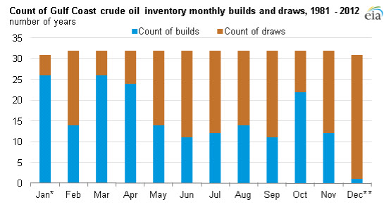An EIA study published in 2013 shows the dramatic decline of Gulf Coast inventories in the month of December. The withdrawals actually begin in November. The taxes have not disappeared. There is no reason to expect that the avoidance strategies of 1981-2012 would have changed. In fact, price and market history since then support this explanation even today.