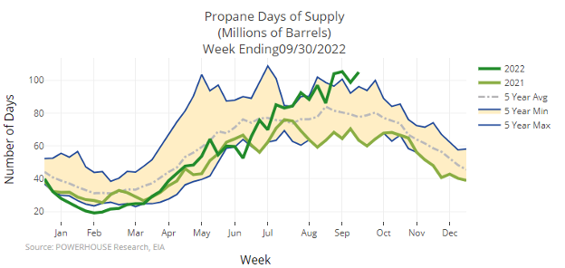 Propane stocks increased by 1.1 million barrels from the previous report week to 85.5 million barrels. The report estimated current demand at 895,000 barrels per day, a decrease of 35,000 barrels daily from the previous report week.