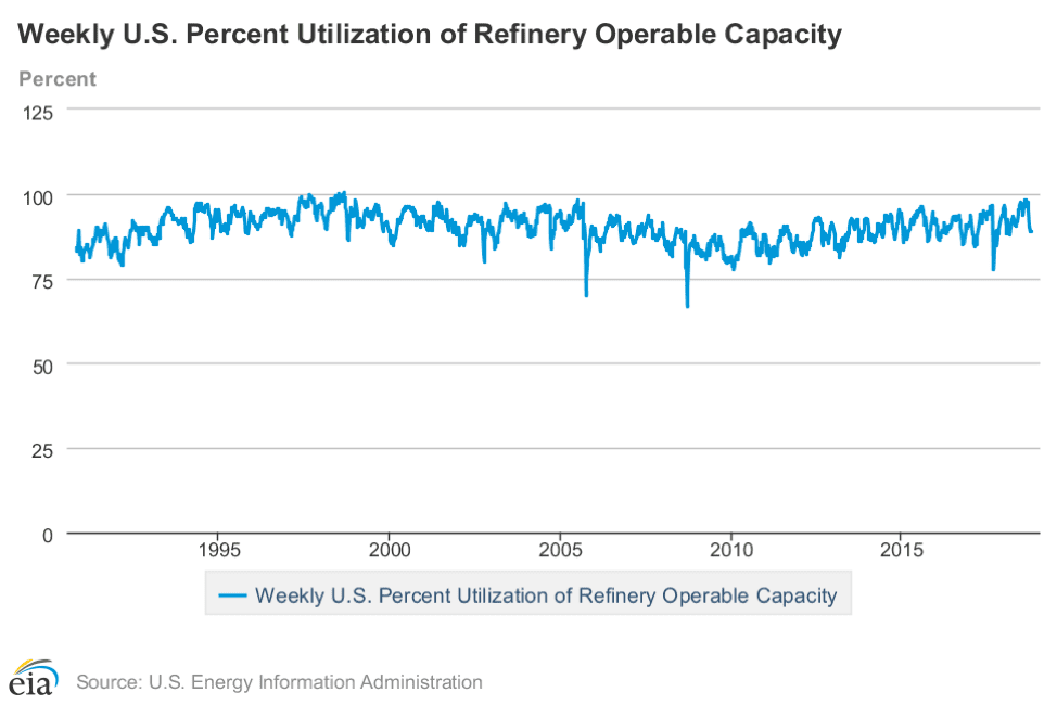 And this is occurring while Iranian crude oil is about to be constrained. Ironically, there is evidence that Saudi Arabia is near its near-term productive limit and might not be able to replace as much of any lost Iranian supply anyway.