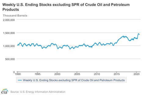 Total commercial stocks of petroleum fell by 7.5 million barrels during the week ended September 18, 2020.
