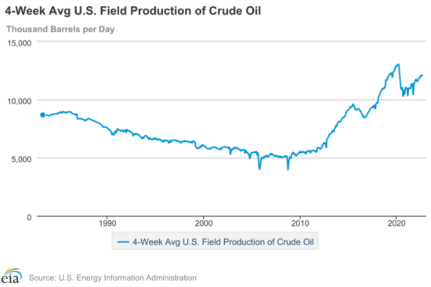 - Crude oil production tops 12 million barrels daily