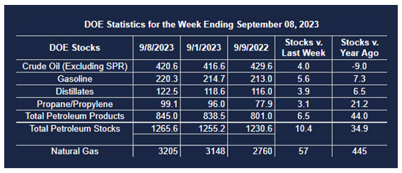 Supply/demand data in the United States for the week ended September 08, 2023 were released by the Energy Information Administration.